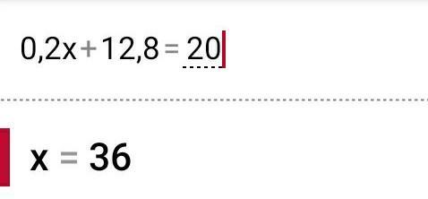 0,2х+12,8=20; 0,2х=7,2; х=36