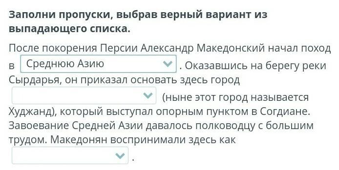 (ныне этот город называется Худжанд), который выступал опорным пунктом в Согдиане. Завоевание Средней Азии давалось полководцу с большим трудом. Македонян воспринимали здесь как