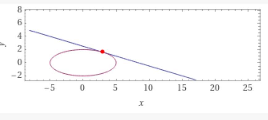 Одно решение - значит, прямая касается эллипса в одной точке: