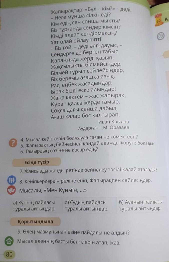Мысал өлеңнің басты белгілерін атап, жаз.