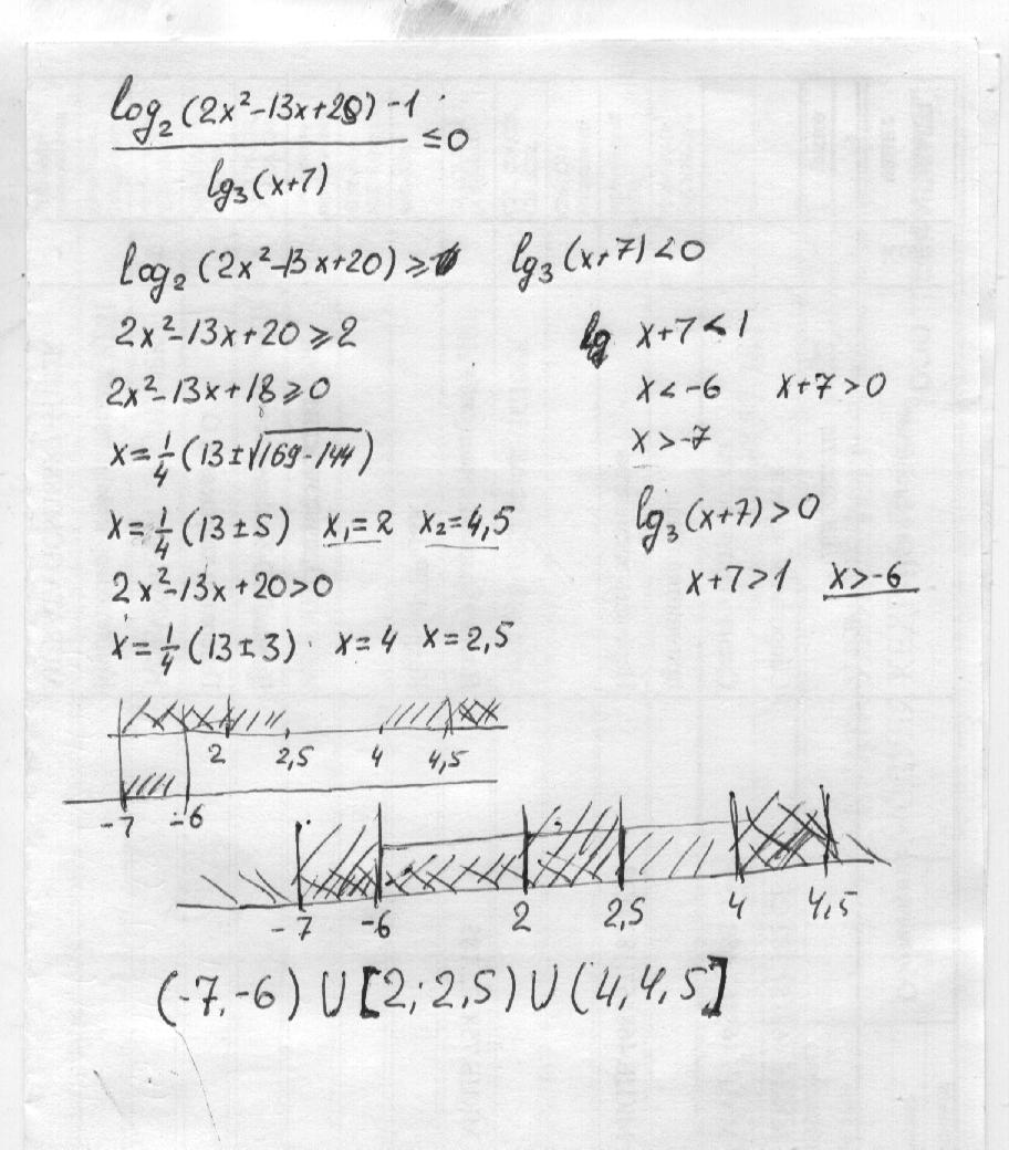 Ответ: х∈(-7;-6)U[2;2,5) u (;4,5]