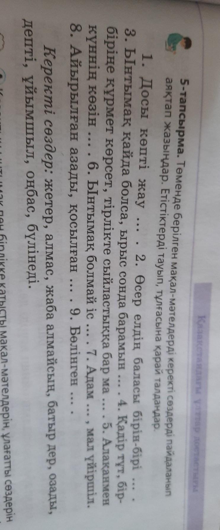 1 алмас 2 батыр дер 3 батыр дер 4 деп 5жаба алмайсың 6 оңбас 7 ұйымшыл 8 озады. 9 бүлінеді