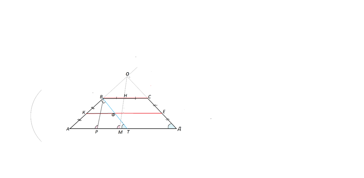 продолжения сторон АВ и СД пересекаются в точке О под прямым углом