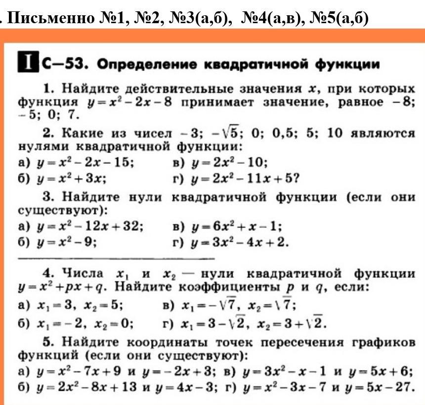найдите действительные значения х при которых функция у = х²-2х-8 принимает значение равное -8; -5; 0; 7.