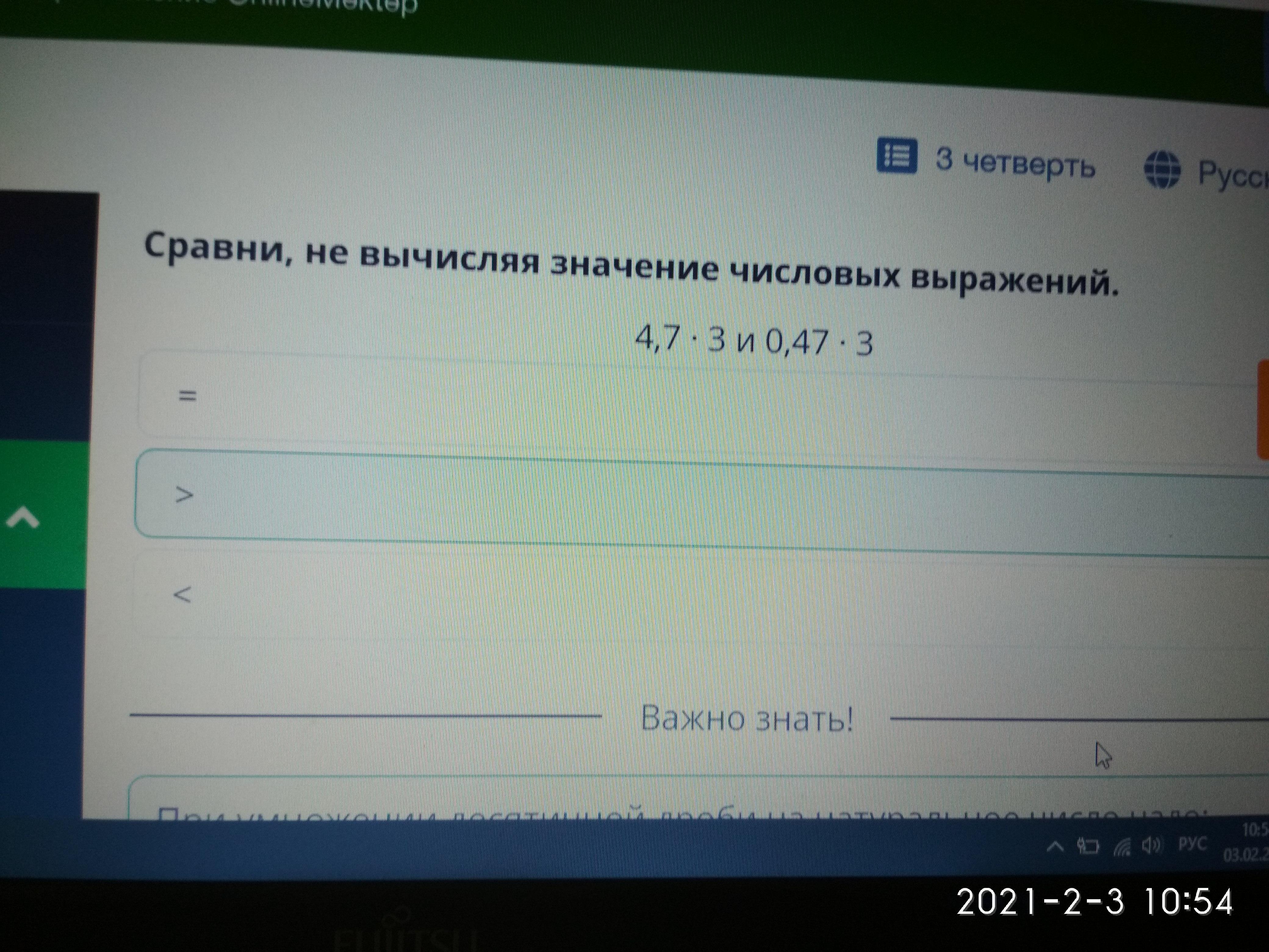 Умножение десятичной дроби на натуральное число. Умножение десятичных дробей. Сравни, не вычисляя значение числовых выражений. 4,7 · 3 и 0,47 · 3 Назад Проверить