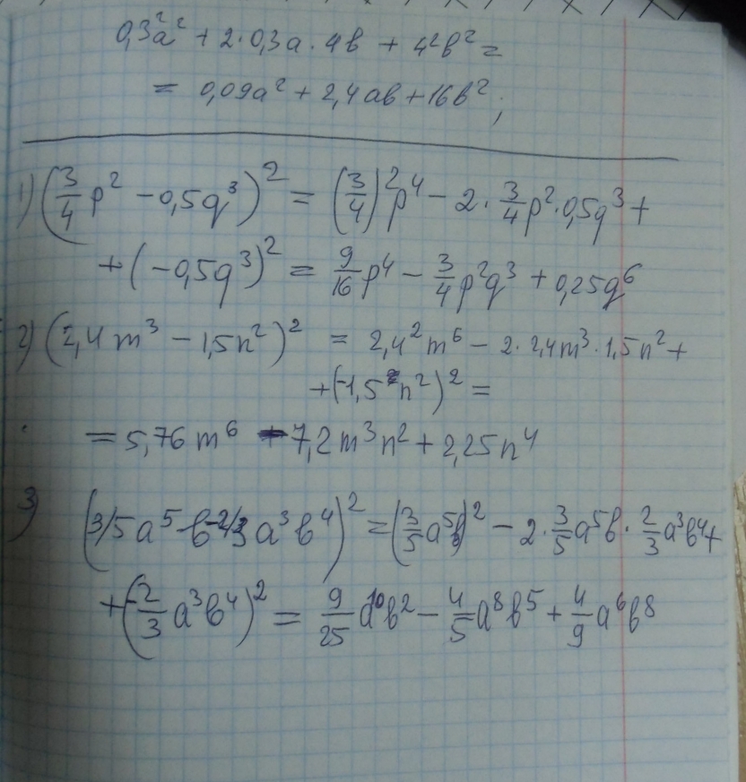 = 0,3 ² a² + 2* 0,3 a*4b + 4²b² = 0,09 a² + 2,4 ab+ 16 b²