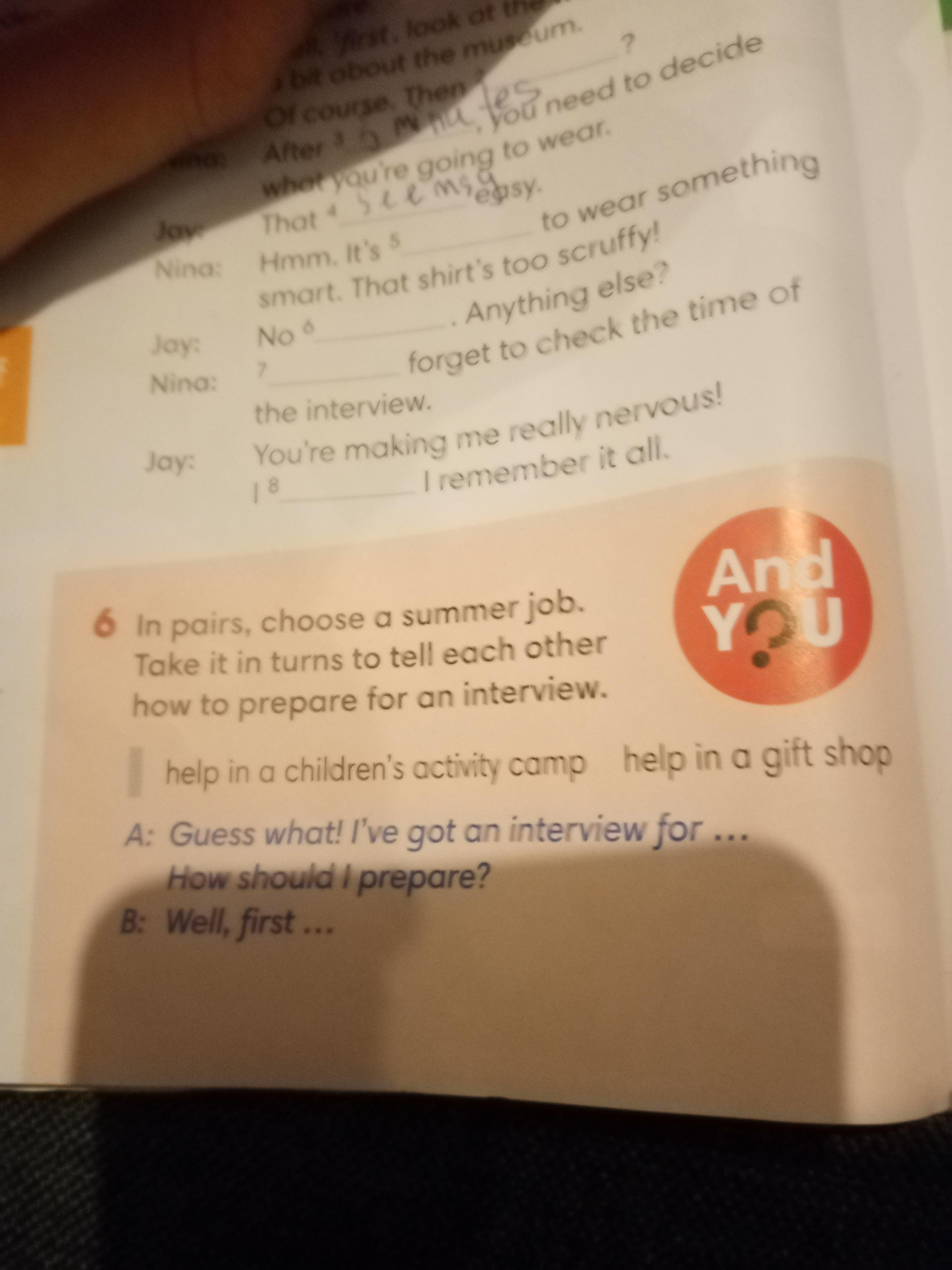 А : Угадайте, что! У меня будет собеседование, что нужно сделать?