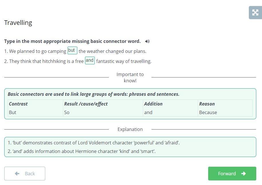 Type in the most appropriate missing basic connector word.