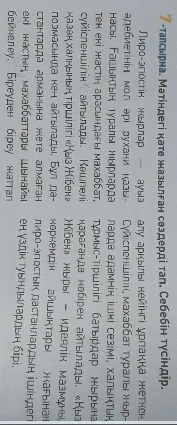 7-тапсырма. Мәтіндегі қате жазылған сөздерді тап. Себебін түсіндір.