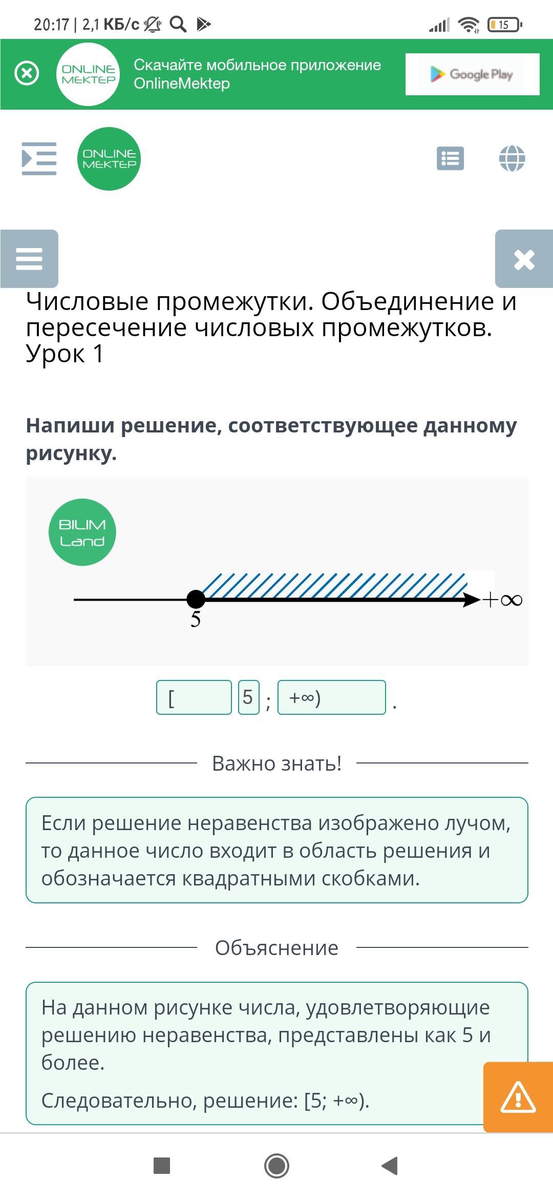 [5; +∞) или 5 ≤ х < +∞