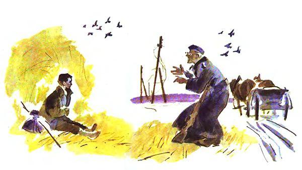 Це був вже досить прохолодний ранок. Ми їхали обозом в сусіднє містечко через безкрайній степ. Навколо ні душі і тиша. Я навіть трішки задрімав, Дорога була з ямами і підводу так підкидало, що я ніяк не міг зручно вмоститися від чого муляли мої ноги, які так у крутило від застарілого ревматизму. Але тут я помітив недалеко від дороги скирту. Можна б було трішки наскубати з неї соломи, підстелити і їхати буде зручніше і тепліше. Я зупинився і неквапом побрів до скирти. Неспішно оглянув її з різних боків. Спробував смикнути пару жмутків соломи, але вона була досить щільно складена. Поряд помітив купу вже насмиканої кимось соломи. Я підійшов ближче і вже хотів скинути ногою верхній шар соломи, покритий вранішньою росою, як раптом ця купа заворушилася і з неї хтось вискочив. Моє серце різко скочило ледве не до п"ят. Перед мною стояв худенький, блідий, коротко стрижений хлопчик. Він весь посинів від холоду, його босі ноги були брудні і мокрі від роси. Стара і аж чорна від мазути курточина висіла на його худеньких плечиках. На худенькому обличчю здавалося, що були лише великі злякані сині оченята. Він щось швидко повторював, простягаючи до мене худенькі посинілі долоньки. Я зрозумів, що він щось говорить про сіль. Мабуть він голодний. Я віддав йому частину свого пайка, що залишилася. Я набрав соломи і ми рушили далі. Сон як рукою зняло. Дорогою мені ніяк з голови не йшов цей хлопчина. Муляло вже не мої хворі ноги, муляло в моїй душі. Клята війна, від неї в першу чергу страждають ні в чому не винні діти !