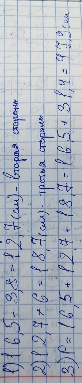 Первая сторона треугольника равна 16,5 см, вторая сторона на 3,08 см меньше первой, а третья сторона на 6 см больше второй. Вычислите периметр треугольника