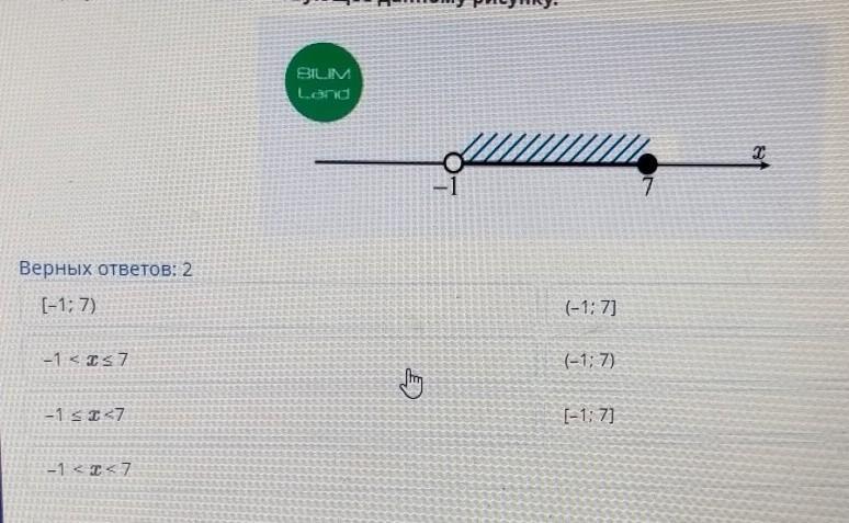 1) -1 < x < или равно 7 (в 1ом столбике 2 вариант)