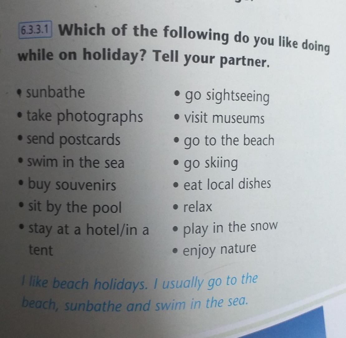 I like to sunbathe and take photographs, but I don't like to send postcards while on holiday