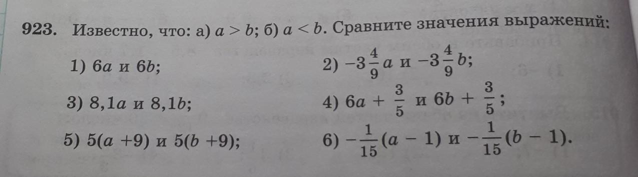 Известно, что: а) а > b; б) а<b. Сравните значения выражений: