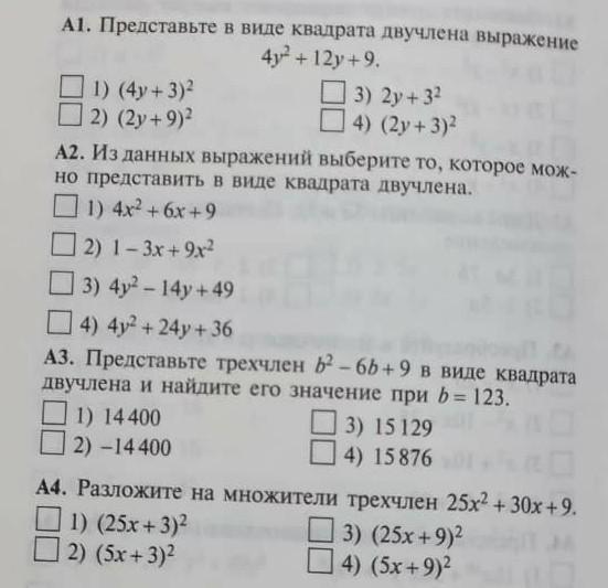 А1. 4у²+12у+9= (2y)² +2 *2y*3 +3² = (2у + 3)²;