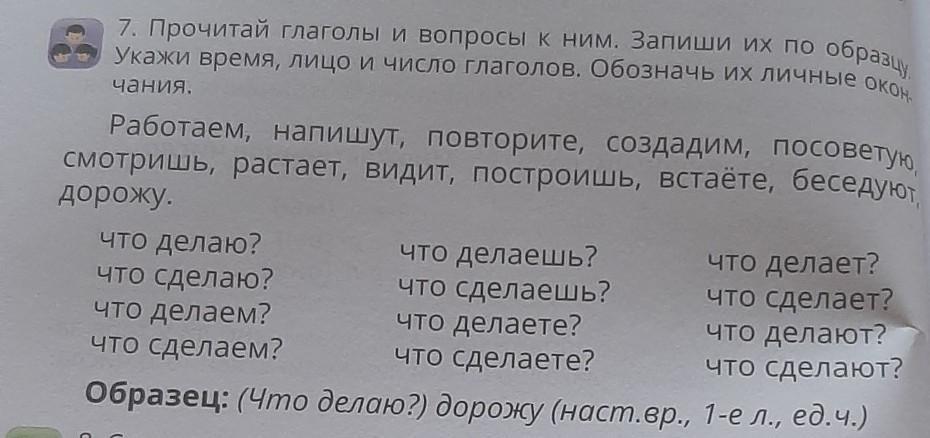 Укажи время, лицо и число глаголов. Обозначь их личные окон.