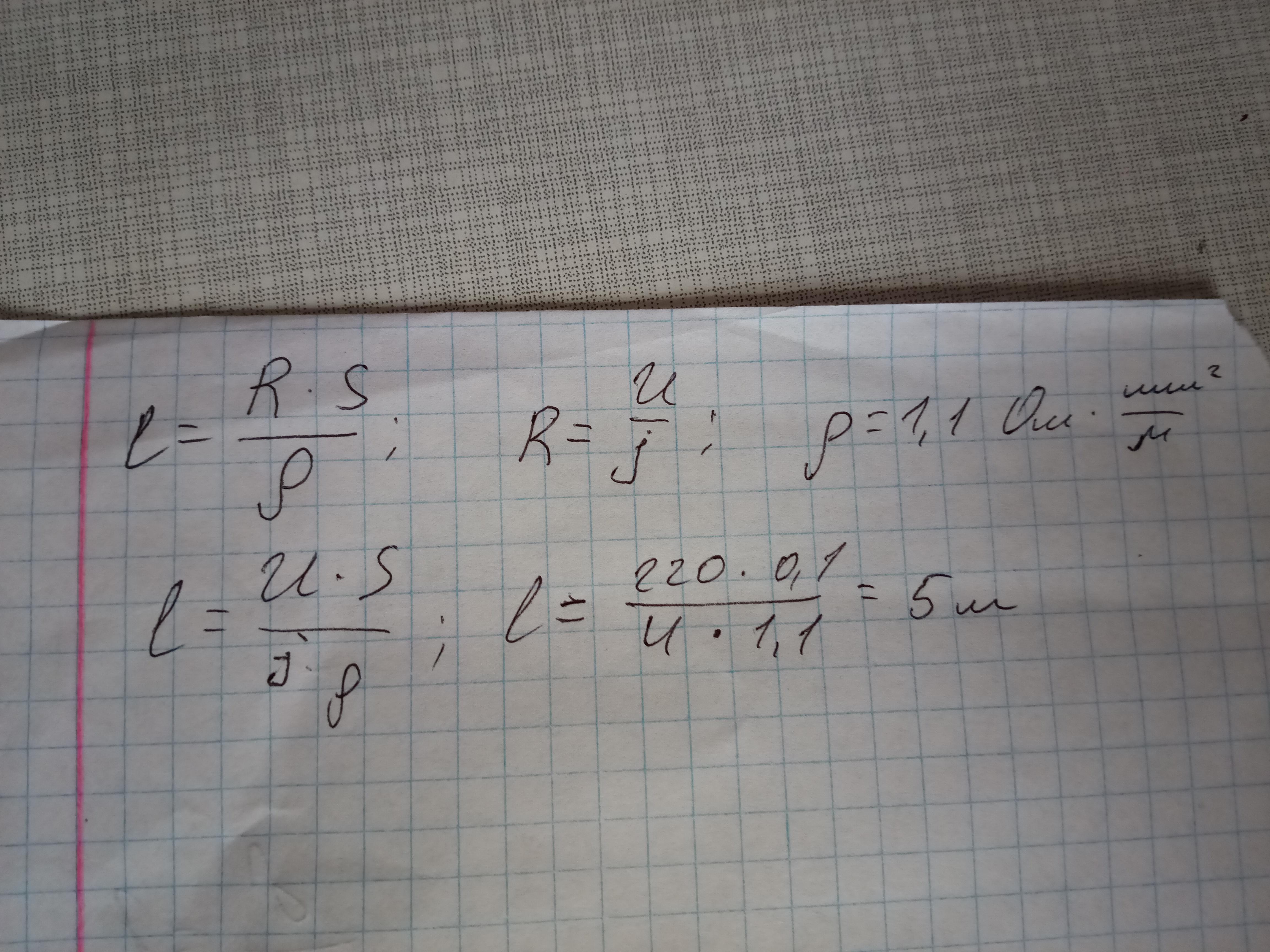 сила тока в спирали электрокипятильника включеного в сеть напряжением 220В равна 4А Какова длина нихромовой проволоки из которой изготовлена спираль если ее сечение 0,1 мм2?