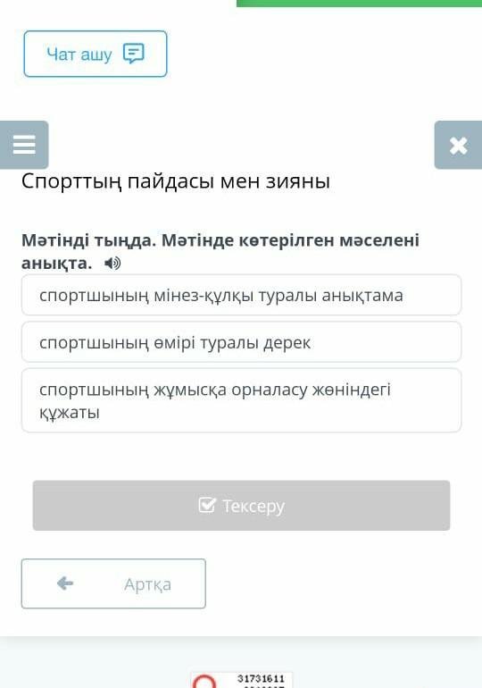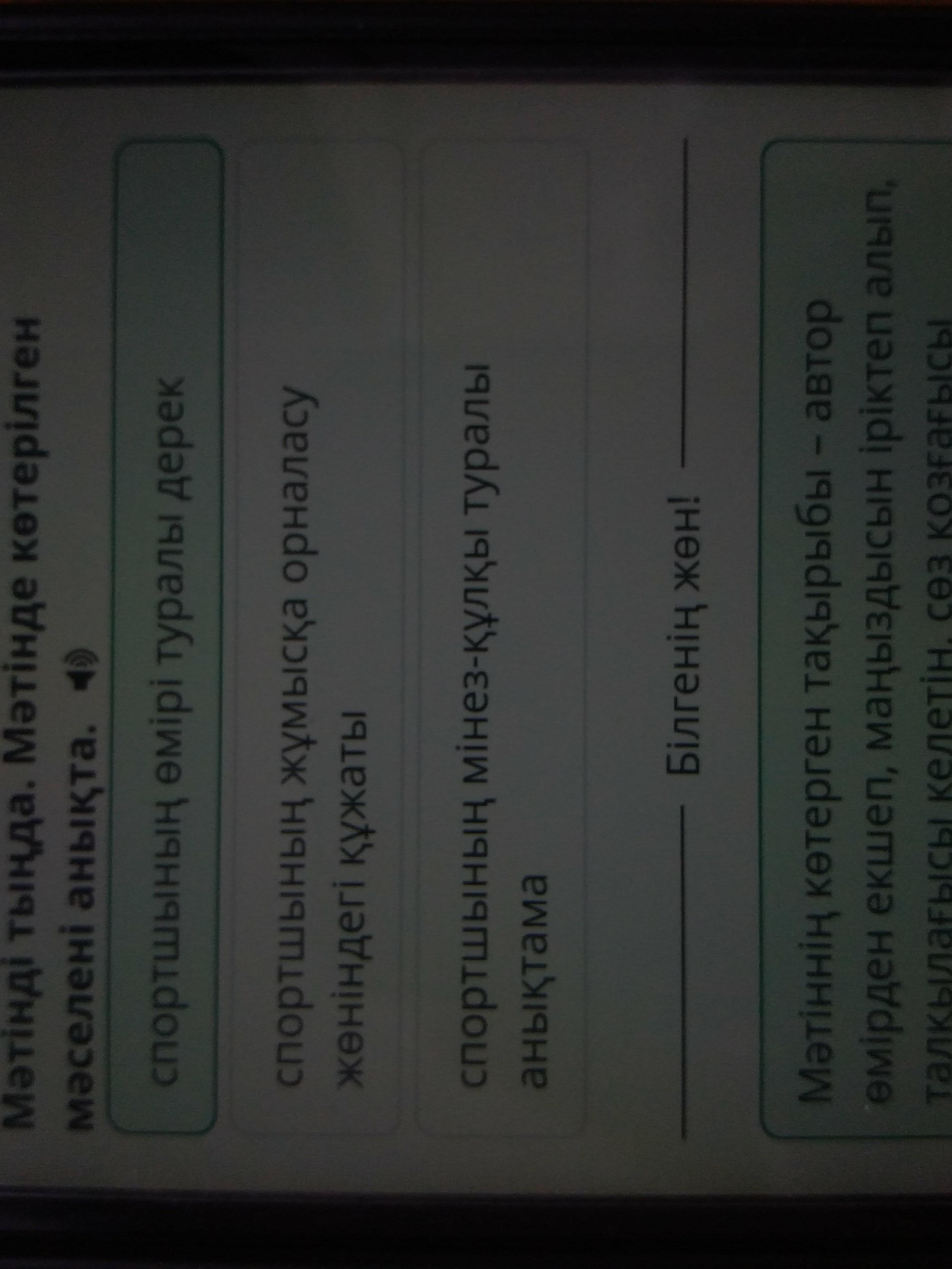 Мәтінді тыңда. Мәтінде көтерілген мәселені