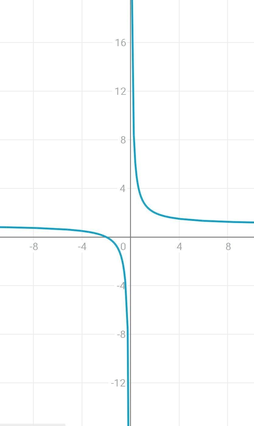 Сначала подбираешь подходящие числа по х и находишь у (всего должно получиться 12 чисел: 6 по х и 6 по у). На координатной плоскости ставишь эти 6 точек и соединяешь их двумя дугами. Функция у=2/х+1 будет отличаться от привычной у=2/х тем, что каждая точка поднимется на одну вверх. Вот так: