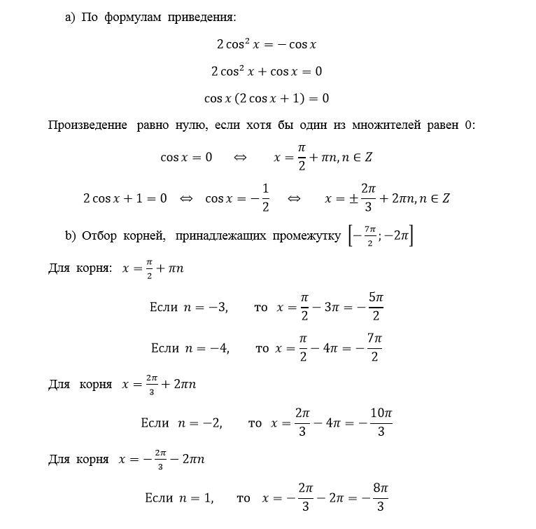 б)Найдите все корни этого уравнения, принадлежащие промежутку [-7п/2 ; -2п]