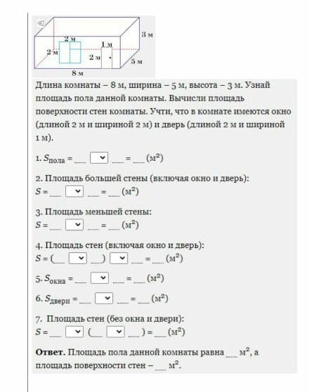 ной 2 ми шириной 2 м) и дверь (длиной 2 м