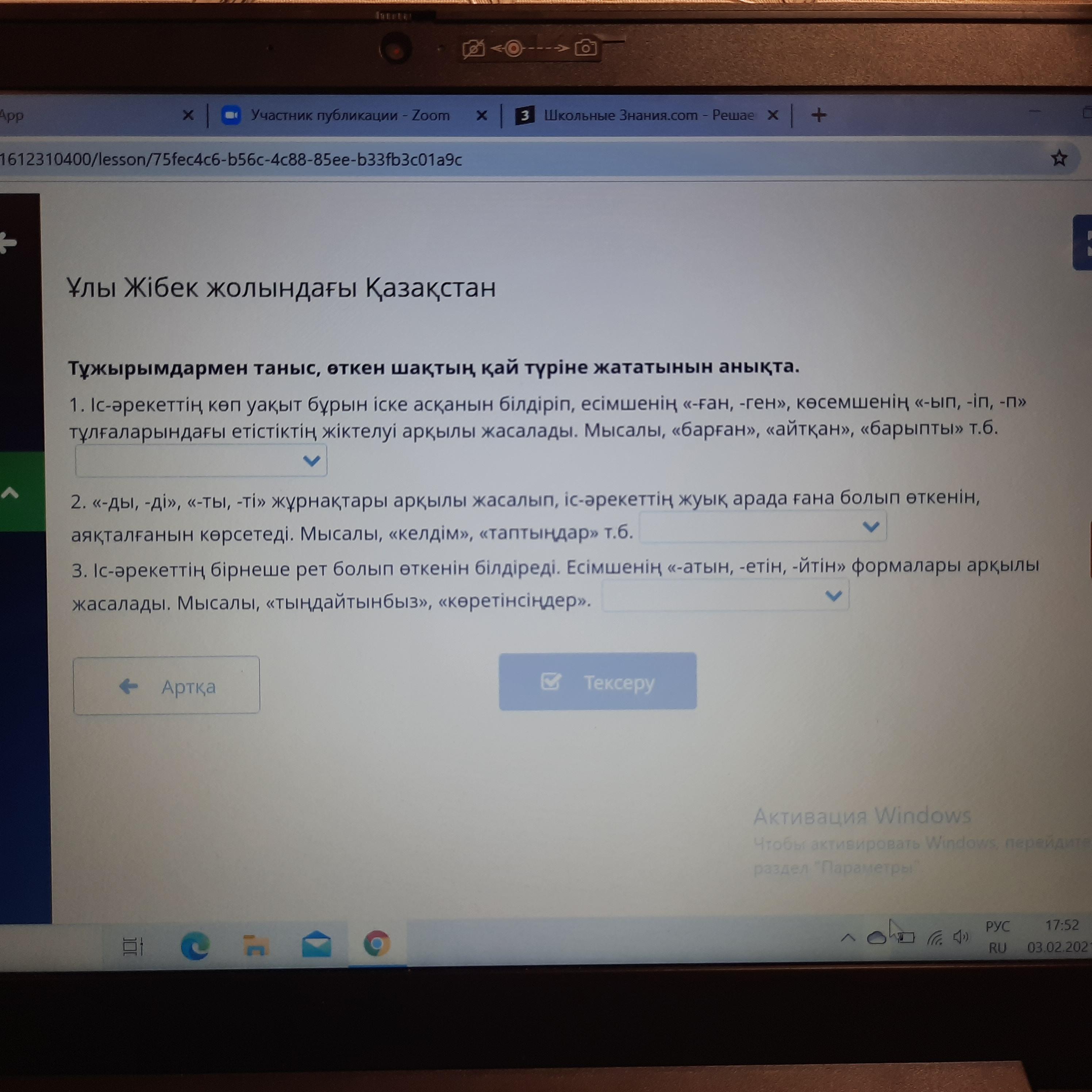 Ответ:1. Барған 2. Келдім 3. Көретінсіңдер