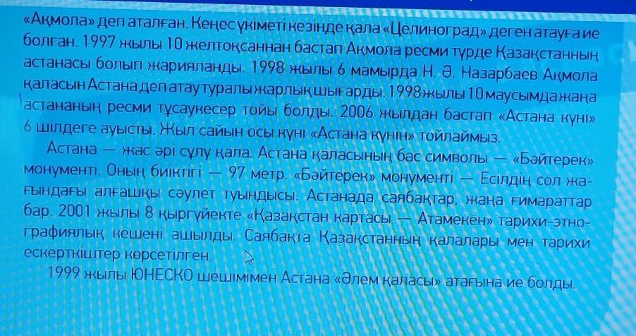 1.НұрСұлтан қаласының бұрынғы атауы қандай?