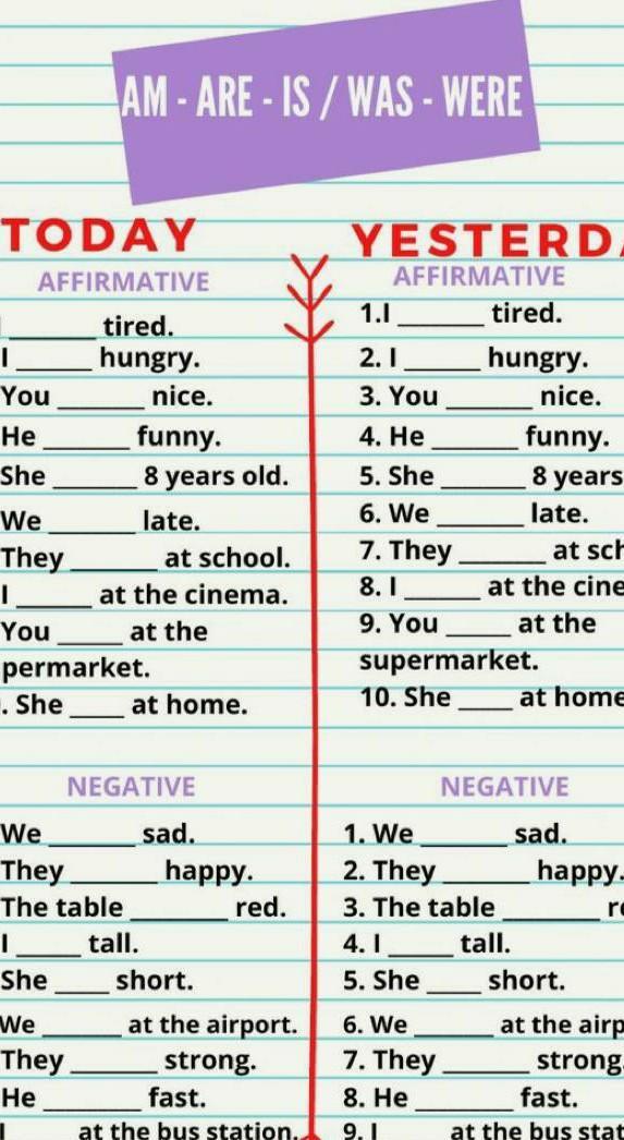 В прошедшем: I, he, she, it - was; you, we, they - were
