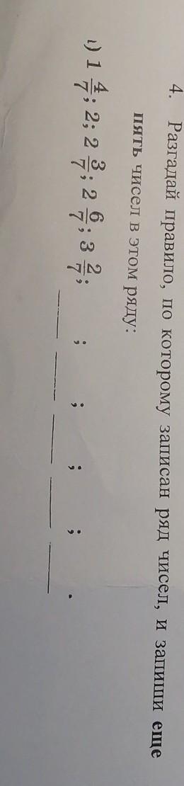 3целых5/7; 4целых1/7; 4целых4/7; 5целых; 5целых3/7; ...