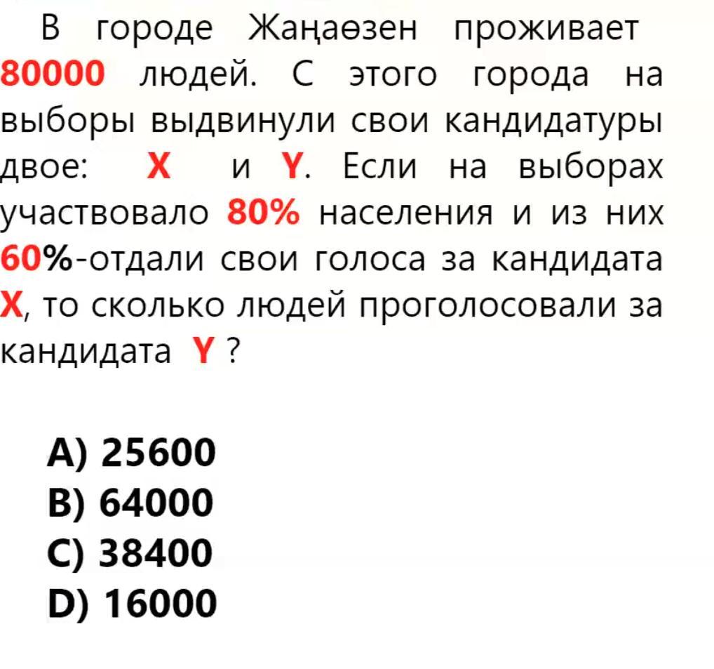 64 000 × 60 : 100 = 38400 отдали голоса за Х