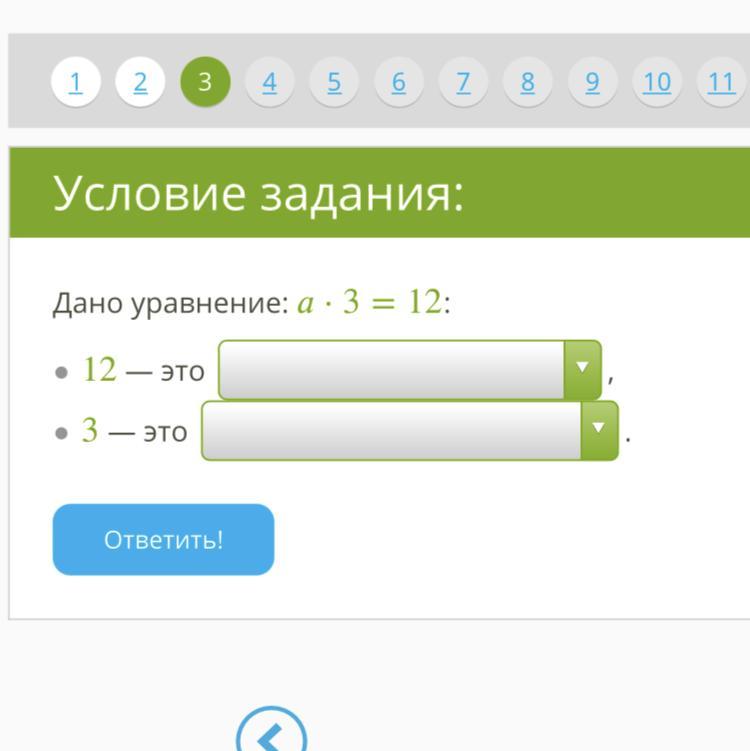 Помогите срочно пожалуйста варианты ответа: 12 это произведение, разность, известный множитель. 3 это известный множитель, уравнение, неизвестный множитель.