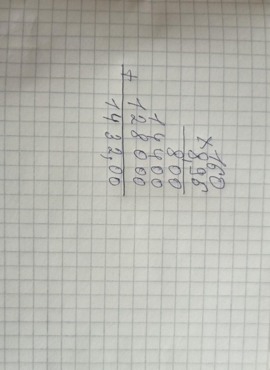 Ответ:1432, решение столбиком на фото, 1432 целое число, поэтому надо убрать ненужные нули.