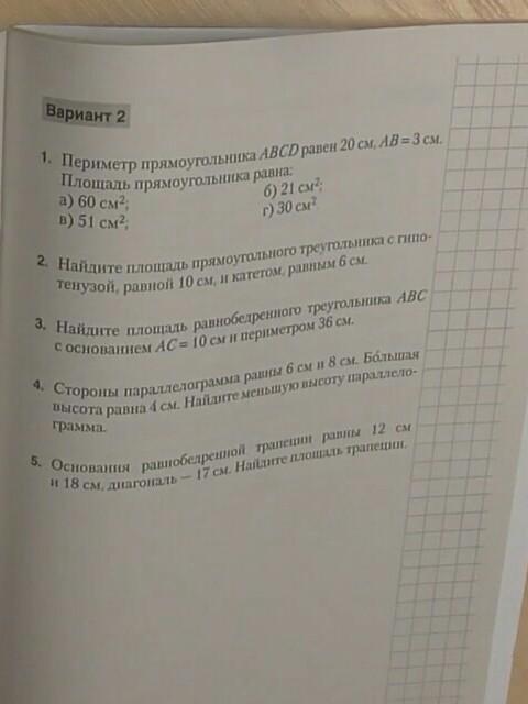 Там где теорема Пифагора нужно всё писать в корне и в квадрате ещё , там где мы вымеряем площю в отказе нужно написать сантиметров квадратных. Надеюсь я всё внятно написала.