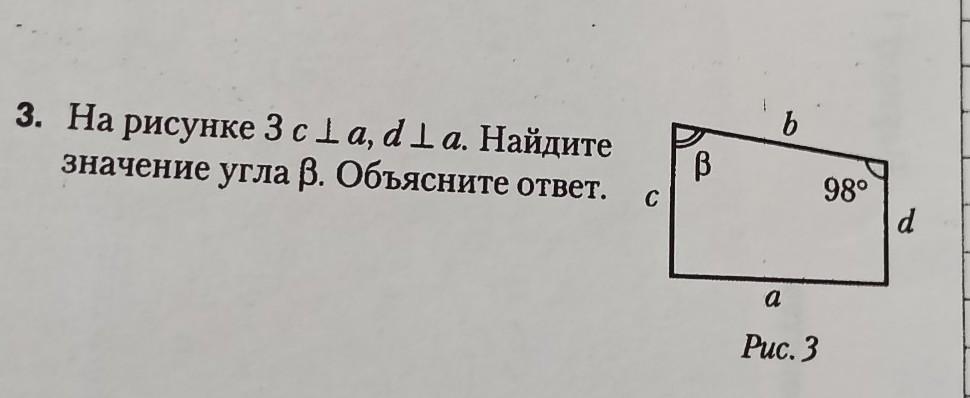 2) Сумма углов в многоугольнике = 360 градусов, отсюда β = 360 - (90+90+98)
