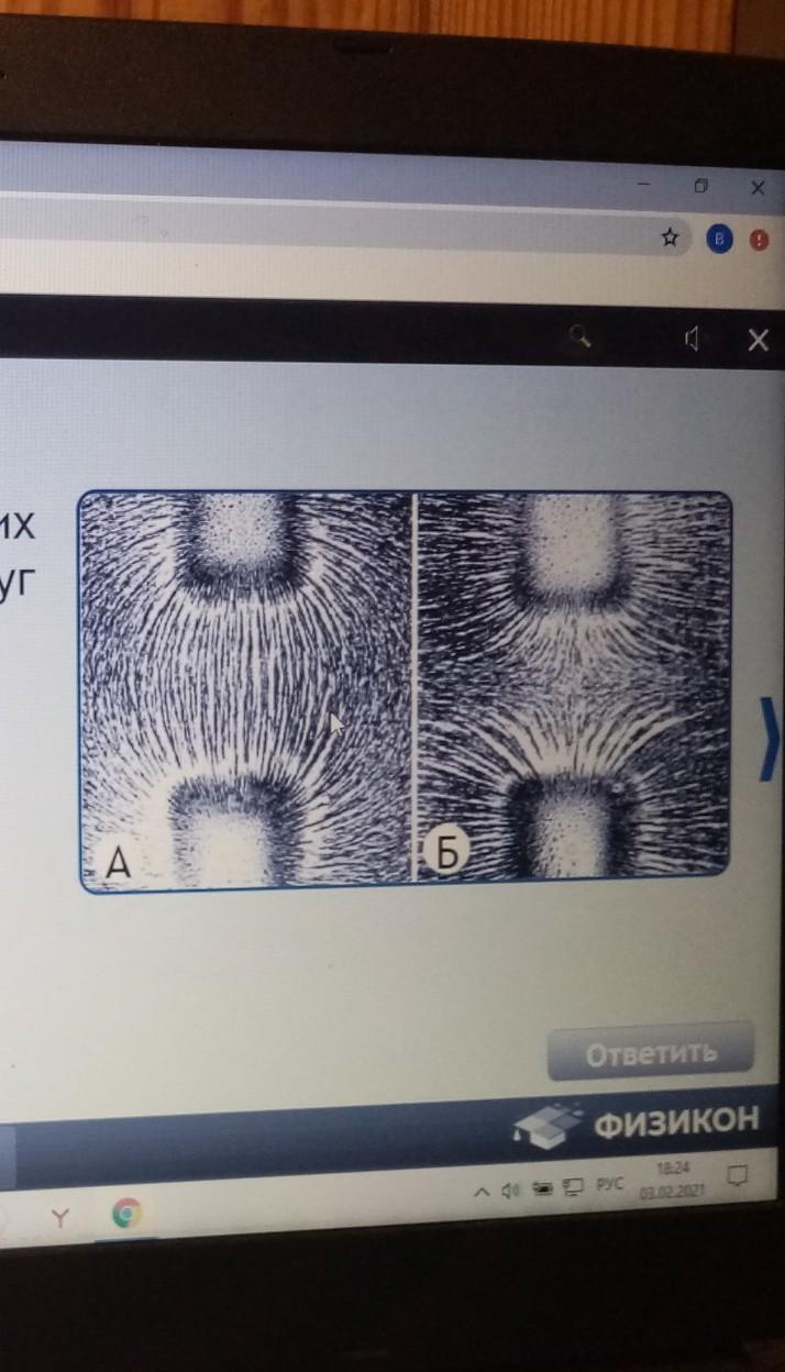 Определите по расположению графических линий, какими полюсами повернуты друг к другу магниты.