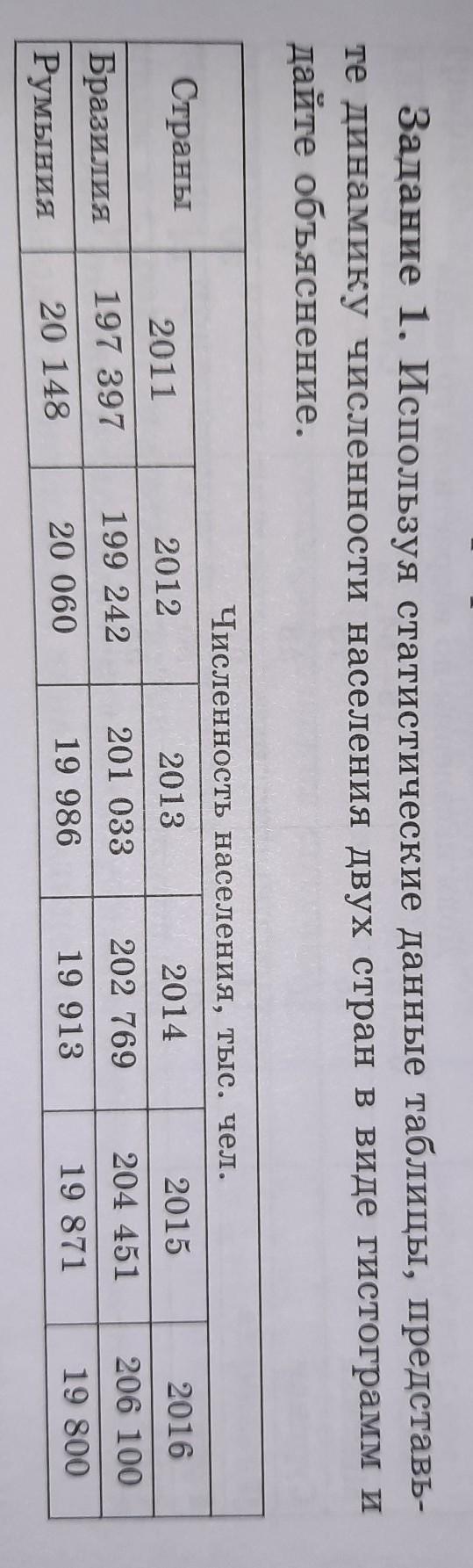 используя статистические данные таблицы представьте динамику представьте динамику численности населения двух стран в видео гистограмм и дайте объяснение