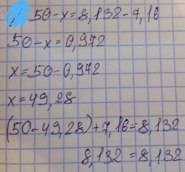 5) (50 - x) + 7,16 = 8,132; (тексеру қалай болады) (как проверить) (How to check)