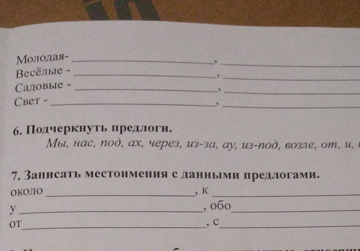 7. около нас, у них, от вас, к тебе, обо мне, с ними