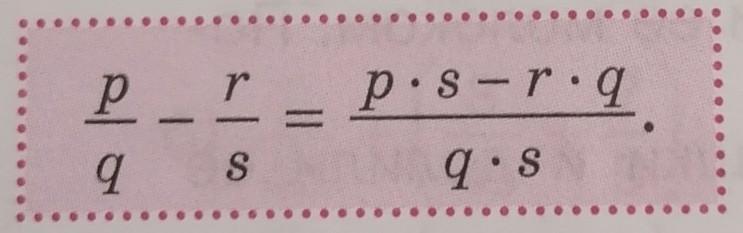 p/q - r/s = p×s - r×q / q×s, вот ответ, надеюсь помогла)