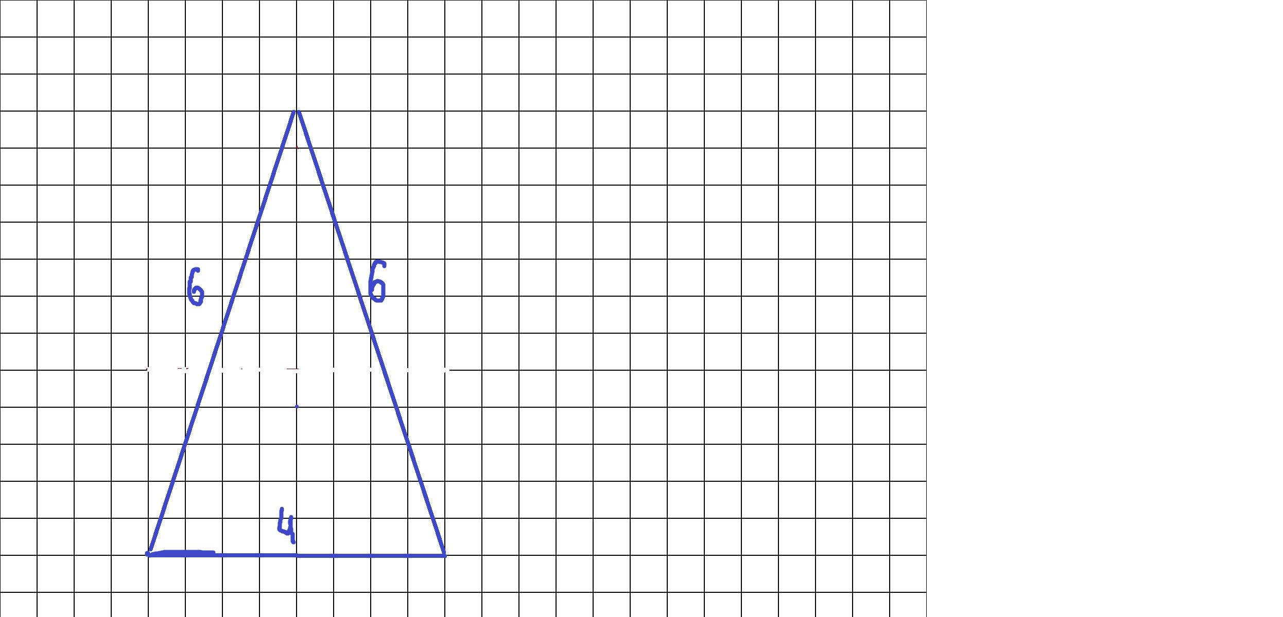 Начертите равнобедренный треугольник так, чтобы его боковые стороны были равны 6 см, а периметр был равен 16 см.