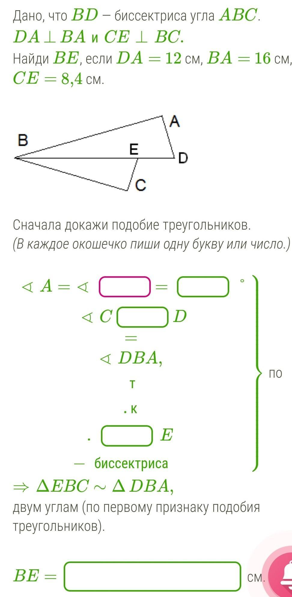 <CBD=<DBC, т.к. BE - биссектриса =>△EBC~ △DBA по 2м углам