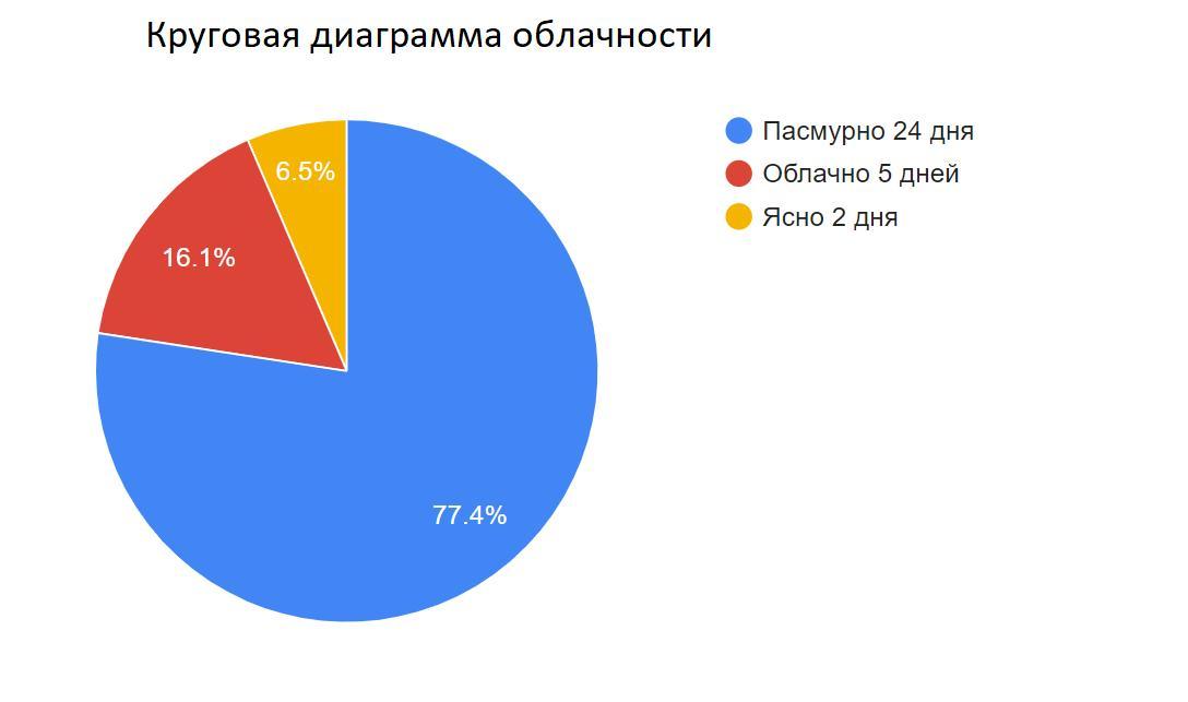 6. Використовуючи календар погоди, складіть кругову діаграму хмарності (за
