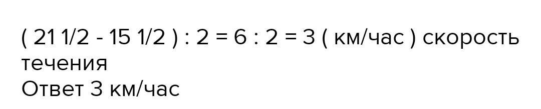 Катер течією проходить 21 1/2км за годину,а проти течії-15 1/2км за годину.Яка швидкість течії?