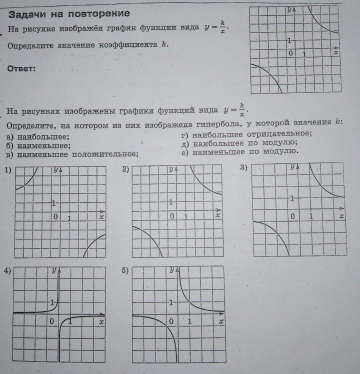 1. Cмотрим на график и вставляем значения в ф-цию y=k/x