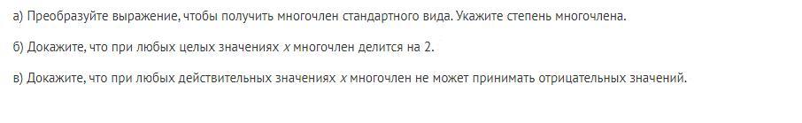 б) Преобразуем многочлен, вынесем 2 за скобку и получим , т.к один из множителей это 2, это этот многочлен очевидно делится на 2.