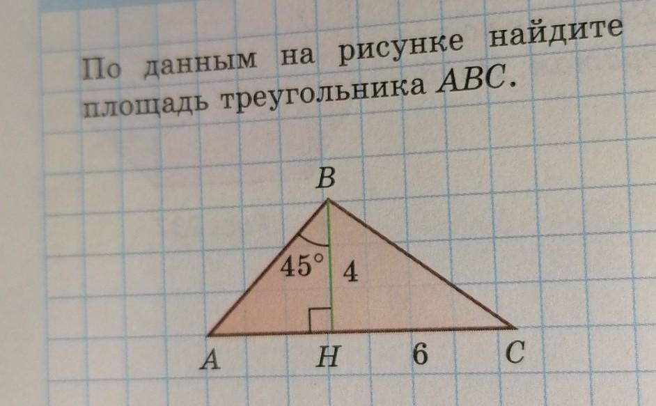 S = (AC · ВН) : 2 = 10 · 4 : 2 = 20