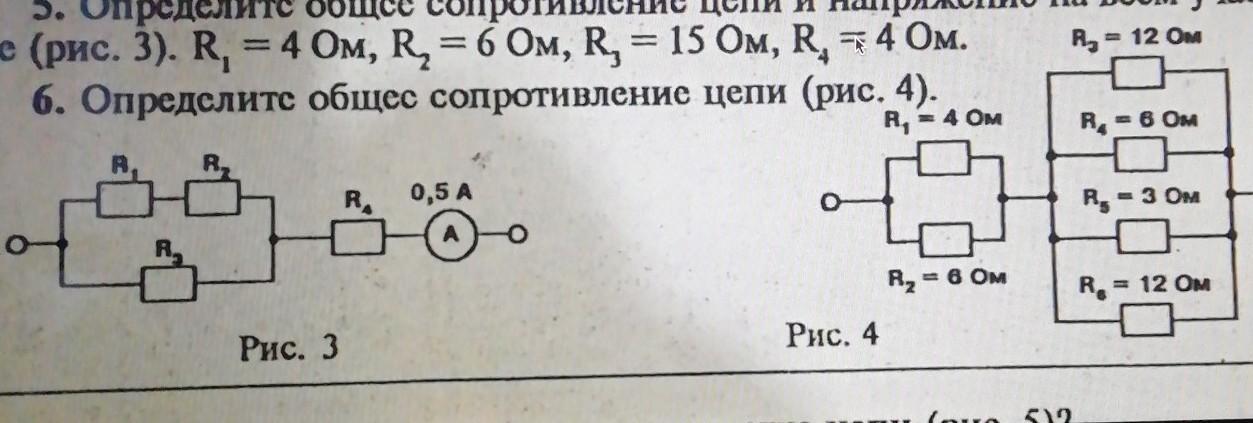 где 2 резистора 1/R=1/4+1/6=5/12 R=12/5