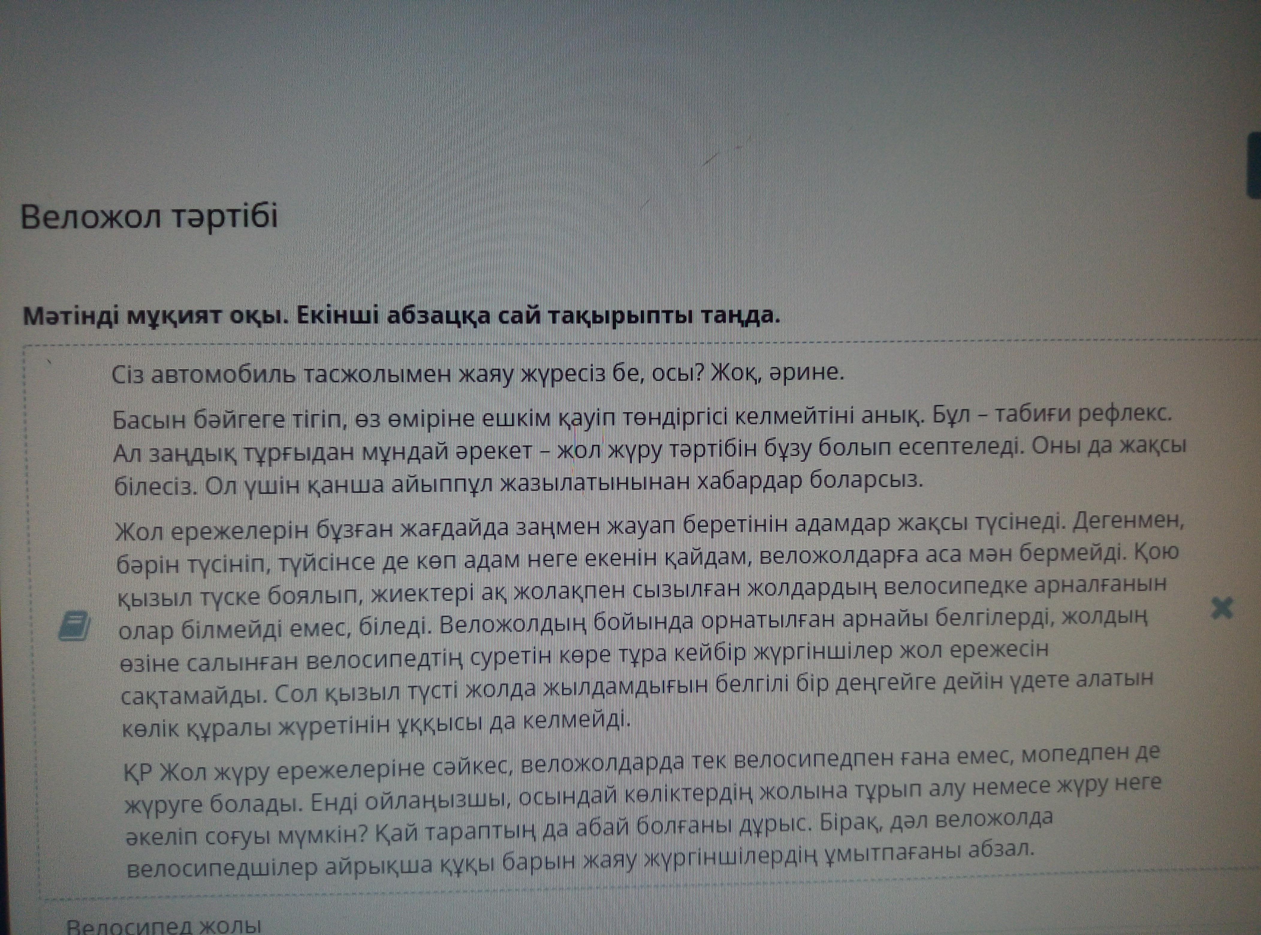 Мәтінді мұқият оқы. Екінші абзацқа сай тақырыпты таңда.