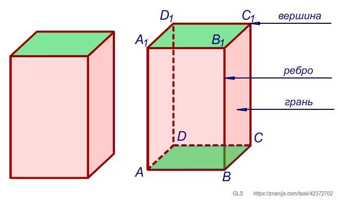 Требуется записать, сколько у прямоугольного параллелепипеда вершин, граней, рёбер.
